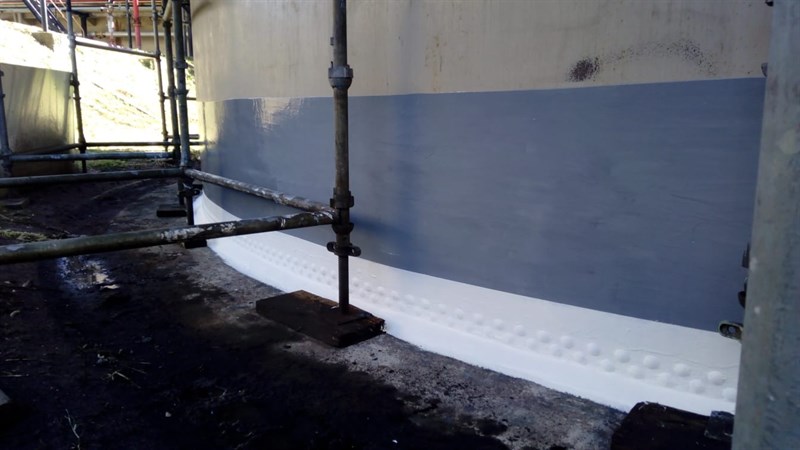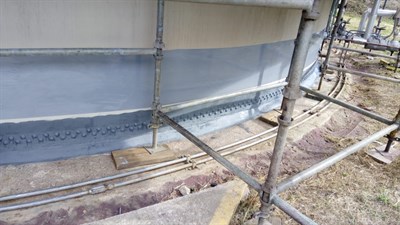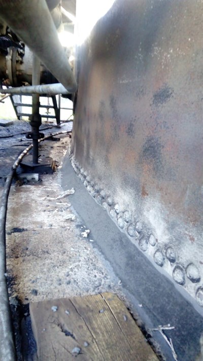 Problem: An existing coating had failed at the base of a rivet tank and degraded due to UV exposure. With the tank base unprotected moisture ingress was able to shoot underneath the tank as the tank expanded and contracted causing further corrosion.
