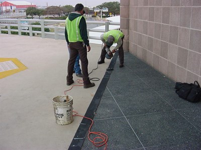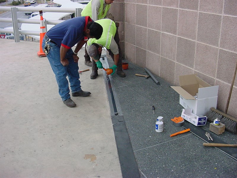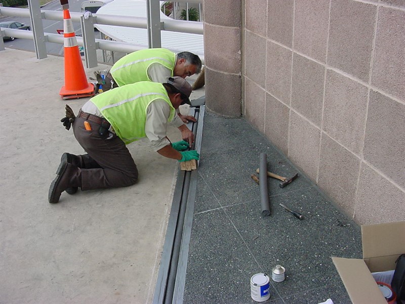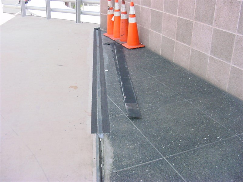 Problem: Previous repairs included steel covers over the joint. Then non-skid tape was added. Plates vibrated loose and along with the tape became trip hazard.