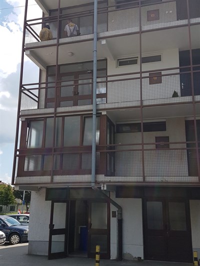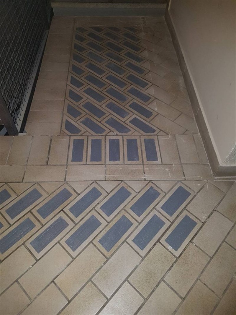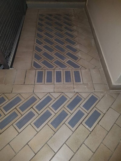 This application was carried out in accordance with Belzona Khow - How system Leaflet FPA - 8. There were 99 stairs (120 cm x 35 cm each) and a hallway on each floor. Anti-slip strips (105 cm x 10 cm) on each stair and in the hallway were applied. The application was carried out in 2 phases in two phases to allow the residents to use the stairway during application. For each phase, the surface was marked with masking tape, then the ceramic tiles were abraded with a rotary grinder. After that Belzona 5321 was hand applied with brushes, incorporating Sure-foot Aggregate with small rollers.