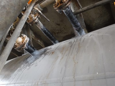 Problem: The nozzles of closed drain drum had developed thin-wall defect due to CUI.