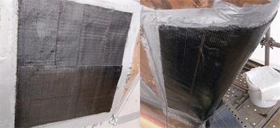 The application was carried out in accordance with a modified version of Belzona System Leaflet SOS-2. Once the areas that required repair were established and prepared via abrasive blasting, a patch repair manufactured using the Belzona SuperWrap II system, was then applied before being overcoated by Belzona 1321 (Ceramic S-Metal).