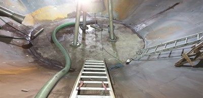 Problem: Erosion and perforation at the base off the steel tank.