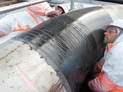 Application Date: November 2016Products:Pre-fabricated plates were bonded over the scabs and then blasting could be allowed. Belzona SuperWrap II was applied over the defect areas so stop further corrosion and to keep the pipeline in service for 10 years.