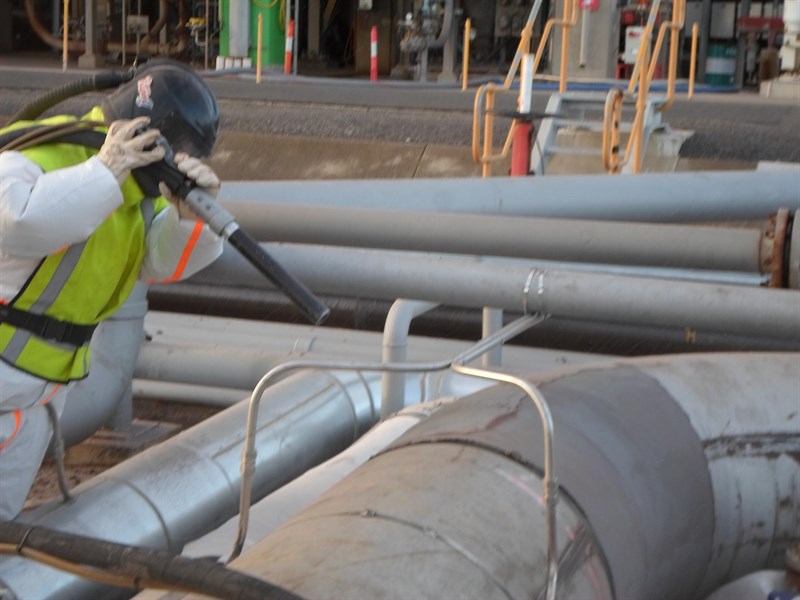 Problem: Corrosion Under Insulation had created corrosion scabs to form at the underside of the pipe. Blasting of these scabs was not allowed.