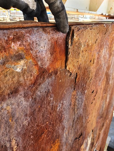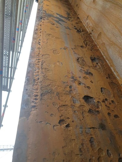 Problem: The ship caisson was experiencing severe corrosion which deteriorated the surfaces in contact with the mobile gates. This deterioration led to the material loss of the lateral plates substrate to which the gates press against and form the seal. This meant that the creation of a watertight seal by the caisson and the gates could not be ensured, and therefore making the caisson not fit for its operational purpose. The main issues that the ship caisson was experiencing were: