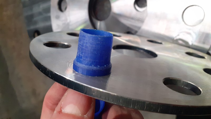 Problem: The standard flange face formers could not be used so a brand new technique was created using a series of 3D printed collars that fit within the bolt holes and gave shimming of 5mm so the Belzona would cover the RF of various sizes 2, 4, 8 inch.