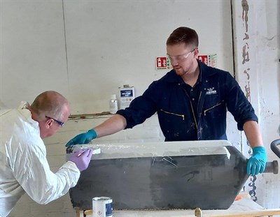 Training was given from the UK Sales Technical team to the contractors at their works The blades were sanded to provide a key then 2 x coats of 5811 were applied to the total surfaces of the fan blades. After curing, the 5811 was again abraded along on the leading edge, appx 80mm either side of the blade's leading edge to the length of the blade. 2 coats of 5721 was then applied to complete the protective application