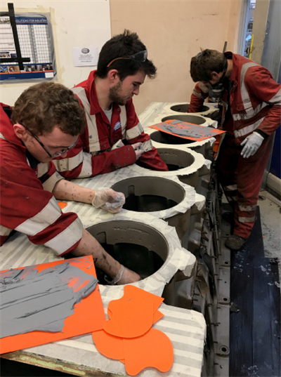 Application was carried out in accordance with Belzona System Leaflet ENC-5 and ENC-6. The areas were grit blasted before Belzona 1111 was used to build up the pitted areas. The material was built up proud of the areas & then machined back on a large lathe.