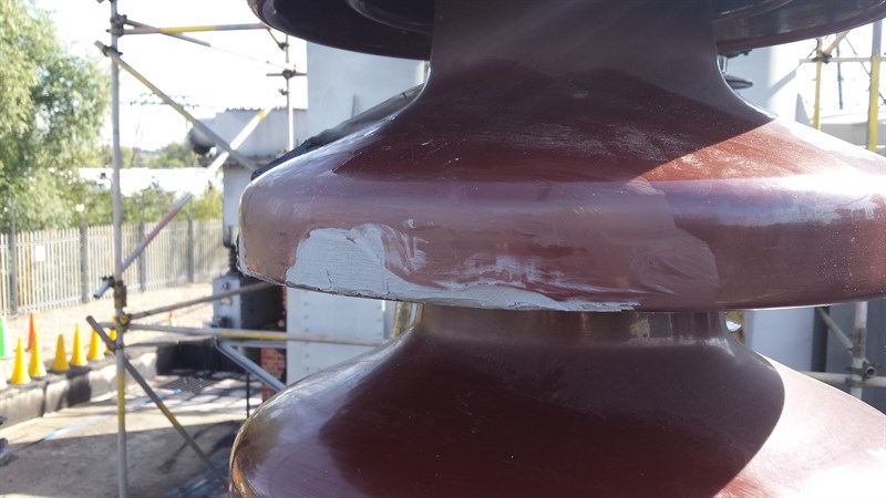 The repair carried out involved no hot works and no expensive plant or equipment hire. The whole repair was safely carried out from a cherrypicker platform which was already on site for the outage. The main reason the National Grid chose this method was the speed of the repair and the huge cost saving (estimated at £10,000) compared to replacing the entire porcelain shed. The porcelain shed is back in service and working normally.