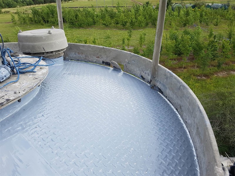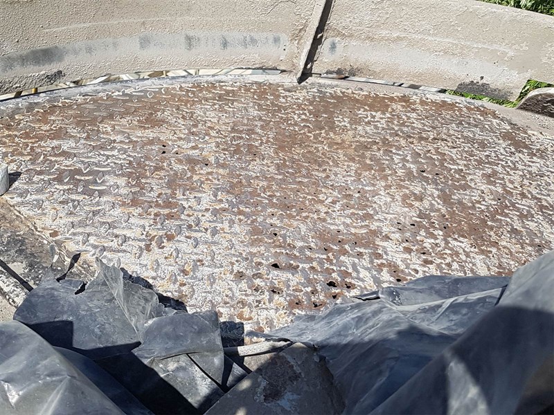 Problem: Any moisture ingress will ruin the stored materials. The customer had noticed problems and after inspecting found that the lid was severely corroded and was letting in rainwater. The silo is 11 metres high, to replace the lid would be logistically very difficult and incredibly expensive.