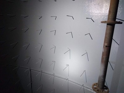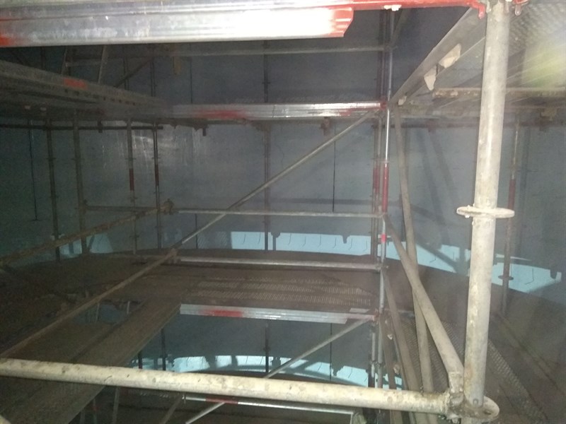 The application was performed in accordance with Belzona system leaflet TCC-5. After blasting and cleaning, the oven was applied with Belzona 1593 in 2 layers. The first coat of Belzona 1593 was applied at 375 microns. After 12 hours the second coat was applied at 375 microns. Complete coating was finished in 2 days.