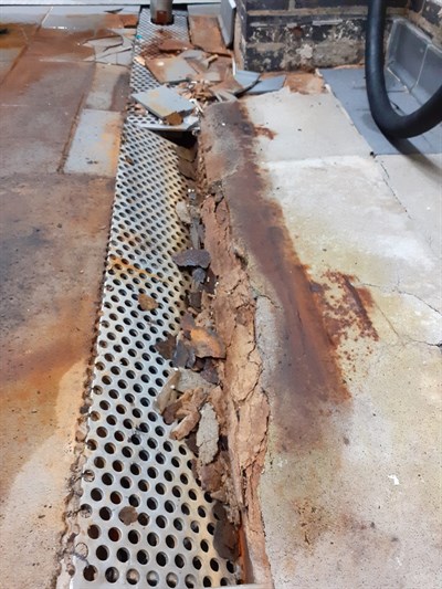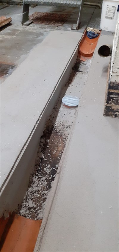 A dedicated room was assigned as a sugar store which included wet areas and drainage. The molasses in the sugar had degraded the drain to such a state that it had to be repaired.