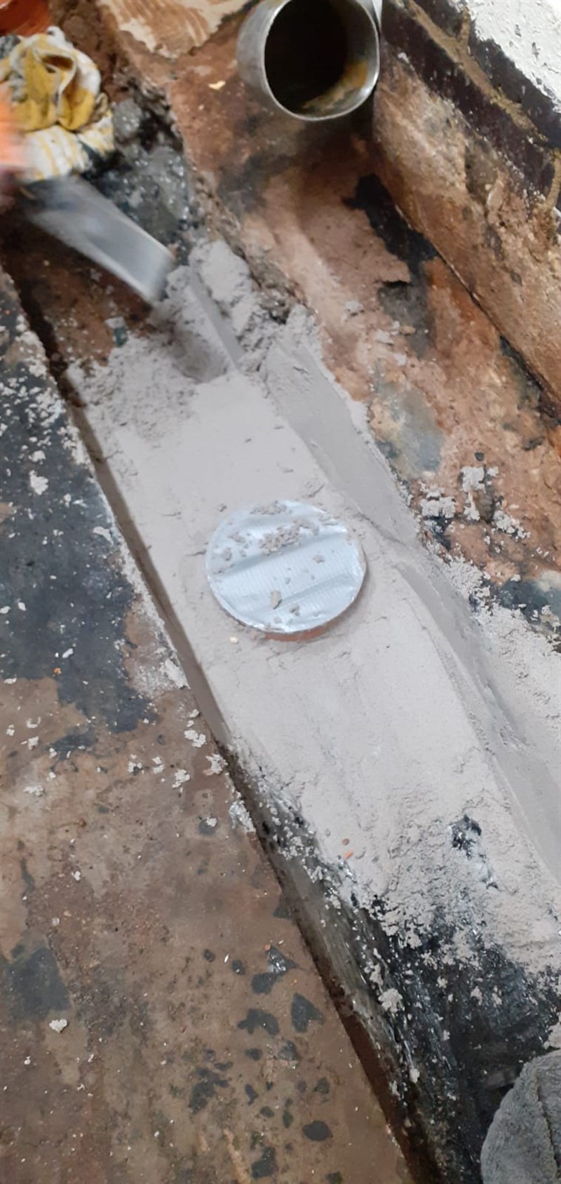 On removal of all the superficial damaged substrate it was noted that there was far more excavation to be done than first thought. All the wet material was removed back to a solid surface. The drain downpipe had collapsed and the distributors engineers fitted a new one made up from standard parts from a builder’s yard, adapting, cutting and fitting it to suit The drain profile was formed by hand from Belzona 4131, installing plastic sections, again made for the actual installation from other parts, and the new shoulders for the drain were formed. On removal of all the formers, the drain was back to the size and standard required, leaving the customer extremely happy.
