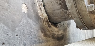 Beer wastewater was leaking through the concrete and steel pipe gape into another adjoining tank.