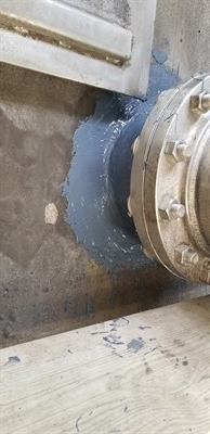 Problem: Gap in concrete tank has silicone filler leaking around the stainless-steel fill pipe into the adjoining tank.