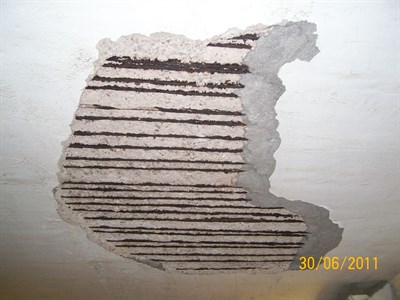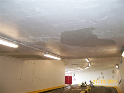 Problem: Carbonation of the reinforced concrete had led to extensive spalling on ceilings and walls, which required urgent repair.
