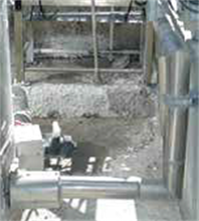 Badly damaged concrete and support plinths in a Caustic Containment area.