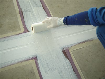 3. First coat of Belzona 3111 incorporating Belzona 9311 Reinforcement sheet being applied
