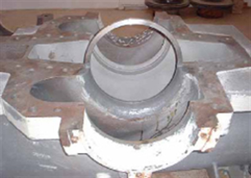 Damaged pump Neck ring seats restored to original sizes Complete repair Coating in good condition after 3-1/2 years of service