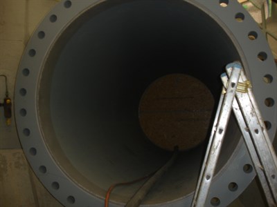 Flange grooves in four pipe flanges. Each flange had a diameter of 1820mm; the grooves were 16mm wide and 3-4mm deep.