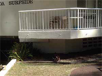 Problem: The original concrete was starting to degrade due to a combination of its prominent coastal location and incorrect positioning of the steel reinforcement during original construction. Carbonation had taken place causing corrosion of the reinforcement steel leading to concrete spalling.