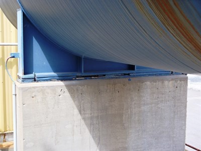 The application followed the Belzona system leaflet GSS-13. The process first involved the removal of the wooden shims and chip out of any loose chocking material and damaged concrete base. New anchors and shims were installed to secure the tank to the base. A temporary former and pouring box was created to surround the concrete base.Application of Belzona 8411 Release Agent was applied to the wooden former and anchor bolts. Temperature of the steel substrate and the IFU was used to calculate the solidifier reduction level by using the graph #2 (steel & concrete). The product was poured into the former and allowed to flow under the tank supports and fill all voids and cavities. Once cured the forms were removed and a chamfer was ground on the edge of the Belzona 7111.