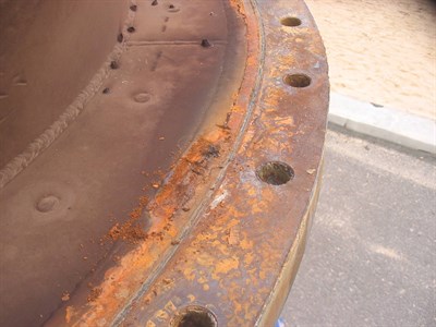 Problem: Galvanic corrosion between the cast iron of the discharge casing and the welded stainless steel sheet.
