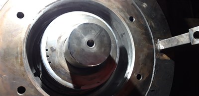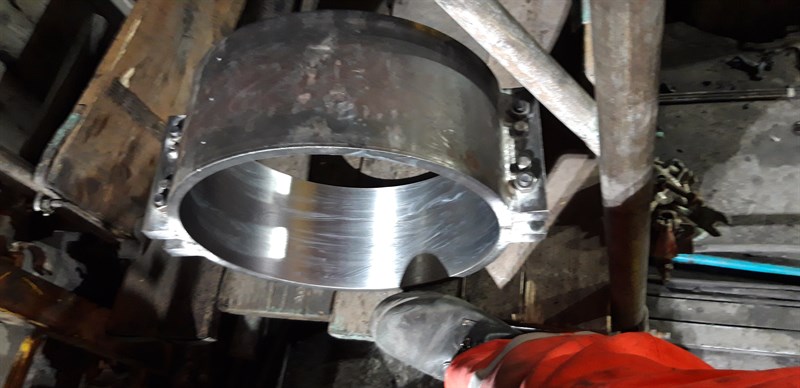 The client had a bearing failure on the Ladle turret, causing damage to the shaft seat. the turret carries two ladles which are full with molten steel, one is draining the steel into the Concast casting a steel slab, whilst the other is being recharged. the total weight of each ladle whilst full of metal is 500 tons.This Failure had brought steel production to a standstill on the production line.