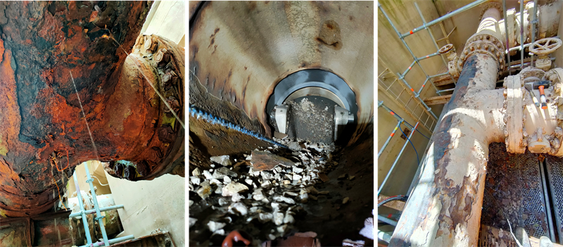 Problem: The 600mm diameter pipe was heavily corroded resulting in several through wall defects.
