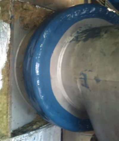 Application was carried out in accordance with an adapted version of Belzona Know-How System Leaflet VPF-11. After grit blasting, the nuts and bolts were encapsulated with Belzona® 1111 before Belzona® 1391 was applied by brush, incorporating Reinforcement Tape, to completely seal the circumference of the flange joint.