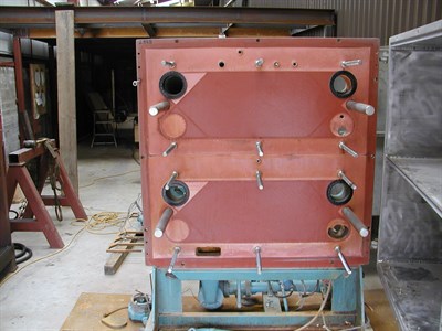 Problem: Galvanic corrosion caused by the failure of the insulating gasket caused severe corrosion and under cut the existing glass flake coating. Base material was Carbon Steel plates were Titanium.