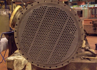 Problem: This Propylene heat exchanger operates at up to 120°C and the tube face had suffered severe galvanic and pitting corrosion. The separator channels and tube face had to be completely rebuilt to prevent bypass of the separator plate. In addition, the client required a lining to prevent further attack to the water boxes, nozzles and the tube faces.