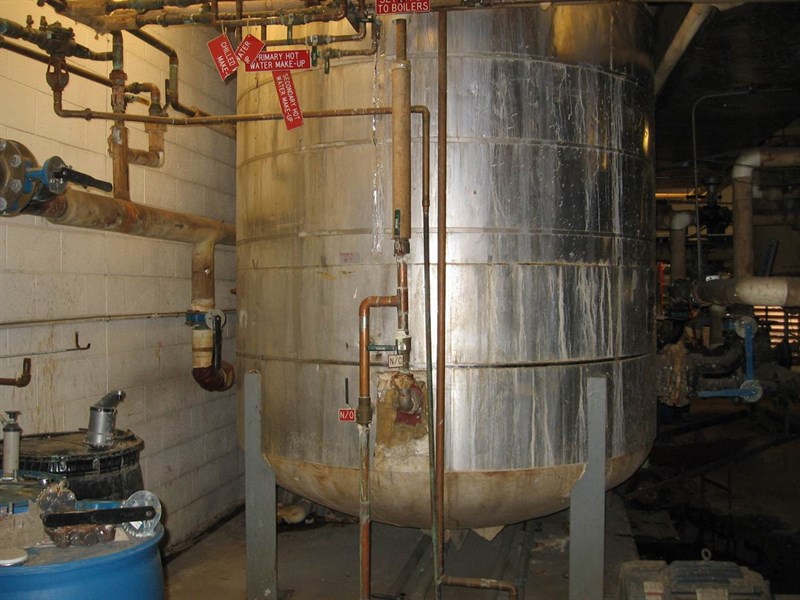 Problem: The hot water tank had been built into the mechanical room in a way that it was impossible to remove and replace it without resituating the whole set up of the room. It had sufficient damage on the interior due to corrosion and buildup of minerals and sediment over the years.