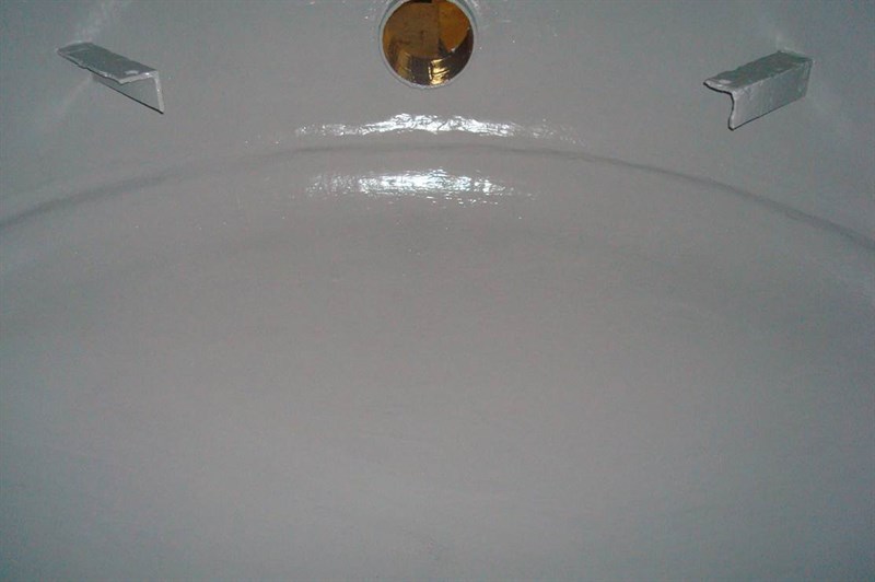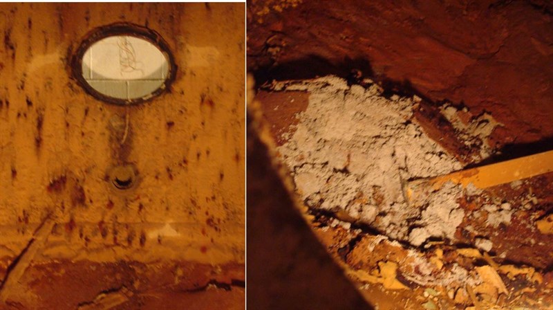 The application was carried out in accordance with Belzona Know-How System Leaflet TCC-5. The substrate was first cleaned of loose debris with a chipping hammer then sandblasted to near white metal SSPC-10. It was tested for chlorides. All pitting and weld seams were filled with Belzona 1111, which accounted for about 90% of the substrate surface. Then it was coated with a dual coat system of Belzona 5891.