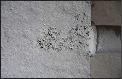 Erosion/corrosion and cavitation by pressure to the face of turbine guide vanes revealed during annual inspection