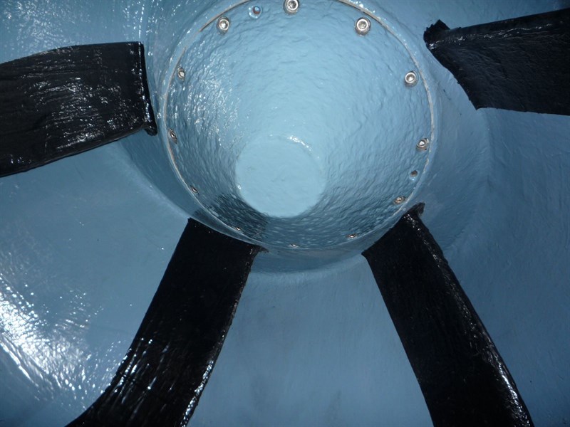 The application was carried out in accordance with Belzona Know-How System Leaflets CEP-1, -3, -5 & -10. Belzona® 1121 used to smooth the surface prior to application of Belzona® 1341 system. Belzona® 2141 was then applied 8" on either side of the vanes to protect from cavitation.