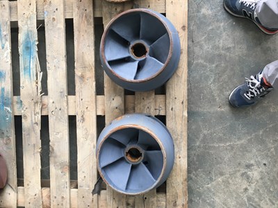 Application completed in accordance with Belzona System Leaflet CEP-1 and CEP-3. The eroded impeller design was rebuilt using a combination of wire steel mesh and Belzona 1311. Once the shape was restored, the impellers were coated using Belzona 1321 to protect form further damage.