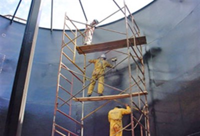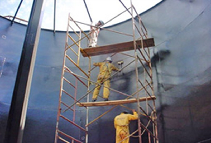 Interior coating of a 20,000-barrel crude oil storage tank.