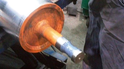 - Damaged shaft with Belzona 1321 brush applied to the prepared substrate prior to forming technique.