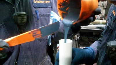 Belzona Know-How system leaflet MPT-2 for rebuilding damaged shafts using forming techniques was chosen for the repair. The application involves the manufacture of a suitable split former, which can be reused to repair additional shafts. The damaged substrate is prepared by a mechanical grinder and undercut a minimum of 1/16 inch (1.5mm), any contamination is removed with the use of Belzona 9111. Belzona 9411 was applied to the former prior to assembly. Belzona 1321 was then mixed in accordance with the IFU and loaded into an injection cartridge for injection into the former, air is vented out of the former ensuring that the cavity is filled 100% with no voids.