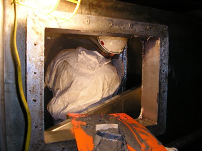 Belzona was chosen as a means of providing an effective, long lasting repair. Alternatives would have been to try to weld the damaged areas but as it was the weld seams that were leaking and there was very tight access this was deemed impractical. There was also the contamination and presence of diesel to contend with which further ruled out the use of any hot work. The repair was carried out over the course of two days to allow for full curing of the material before pressure testing and then returning the vessel to service.