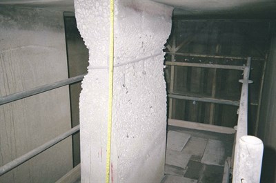 A short outage was planned to make other repairs in the cooling tower when damage was discovered. Client needed a quick solution. Belzona Know-How and its quick-curing Belzona® 4111 allowed this repair to be made in the short shut down period allowed. Acid feed has since been moved to prevent future damage.