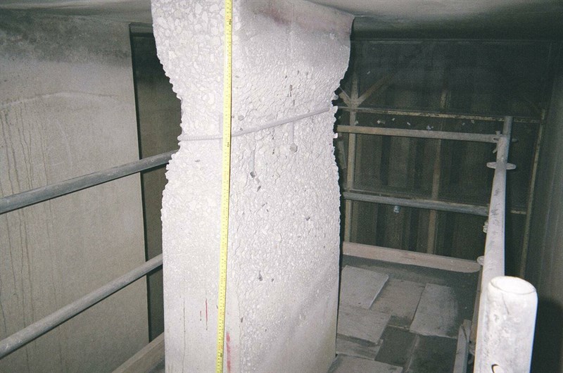 Problem: Lack of sufficient mixing of acid used for pH control in cooling tower water caused concrete deterioration on critical support members of cooling tower.