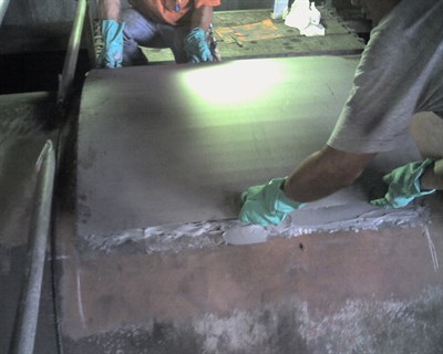 Tank was repaired in accordance with Belzona Know-How System Leaflet TCC-1. Doubler plate was bonded over the holed area.
