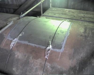 LARGE HOLE IN TANK REPAIRED WITH BELZONA