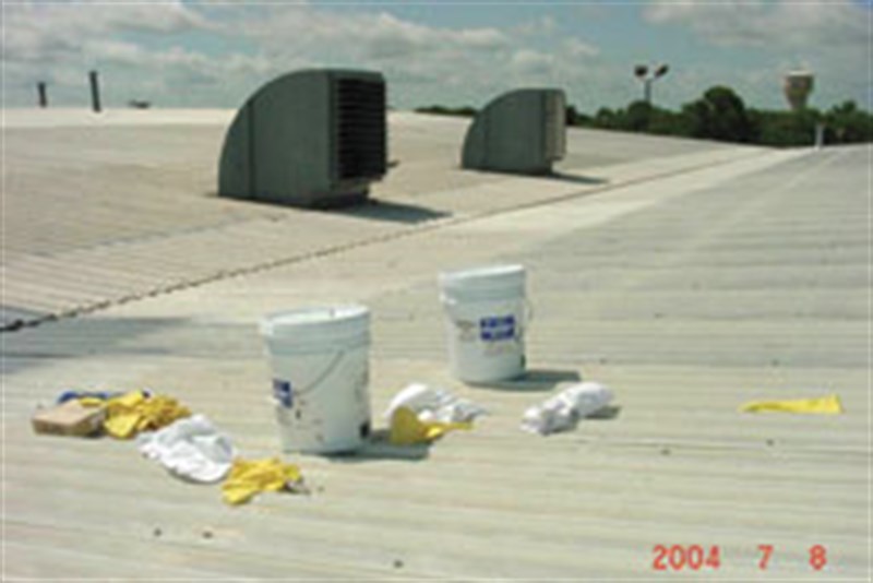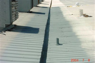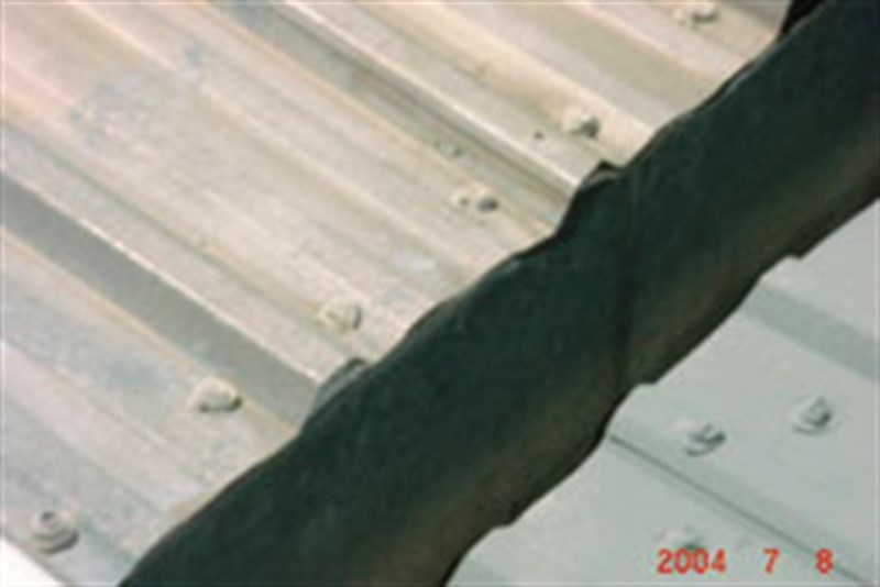 Problem: Galvanized roof had numerous leaks around gutters. Previous attempts to stop leaks with conventional roofing materials failed.
