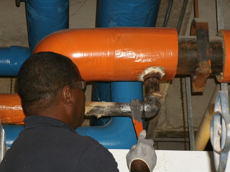 LIVE WATER LEAK CLAMPED WITH BELZONA