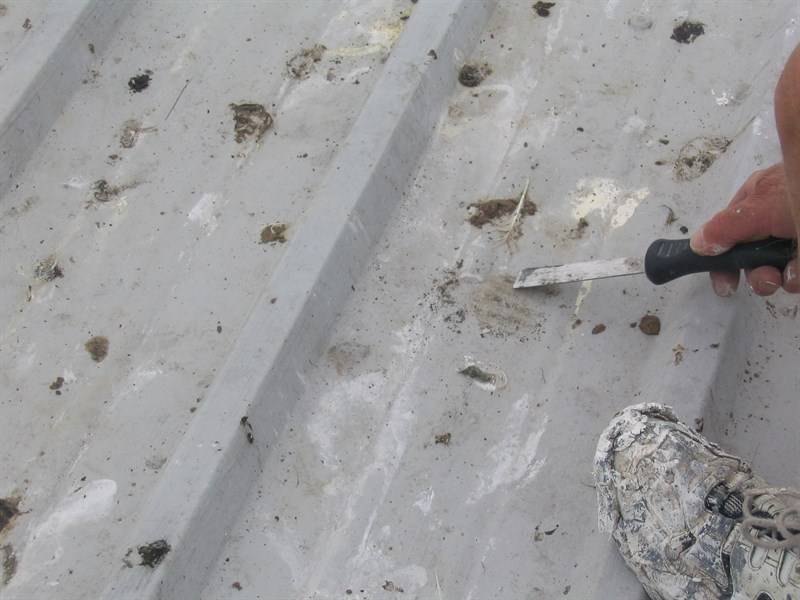 Problem: The original roof had been protected with Belzona® 3111 but new extension was suffering from leaks due to attack from bird litter and excrement which was chemically attacking the plastic coated steel sections. It is possible to see the corrosion on the extension, but not on the area that was originally coated with Belzona® 3111. Original application refurbished to provide further 15 years service life.