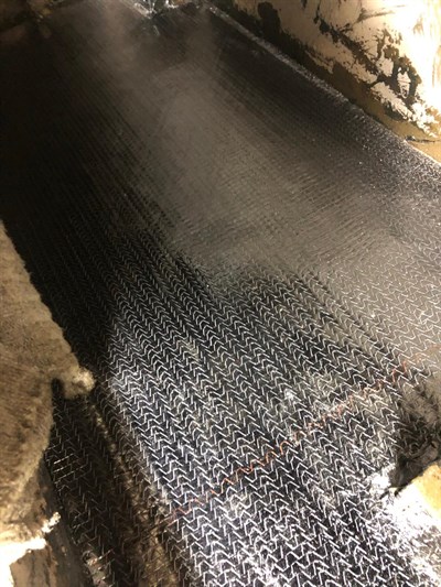 The full application was carried out over four days. The Superwrap II system was able to deal with the complex geometry inside the tank, negating the need for cutting metal doubler plates to size & manoeuvring them inside the tank. Belzona 5811 Immersion Grade has been proven to be a highly chemical resistant coating system that has a long life in similar environments.