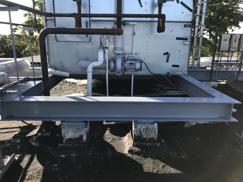 The customer had acquired and installed a brand new cooling tower on an existing corroded framework. Piping system was also corroded.